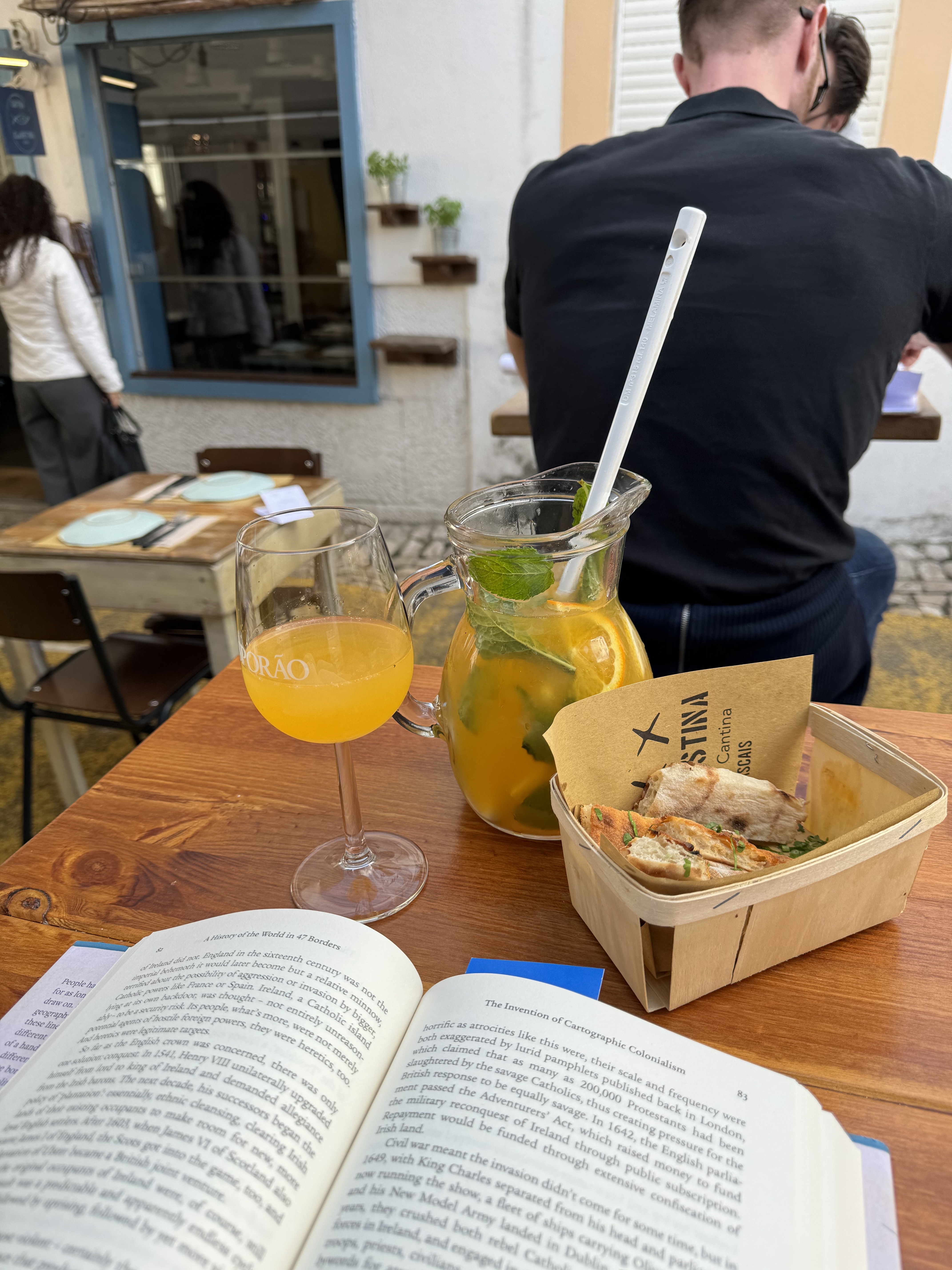 I’ve powered through the first half of this. There’s no better travel companion than a good book; I took this one to bars and enjoyed it with a few sangrias (pictured). I expect to devour the rest in the next day or two. Recommend.