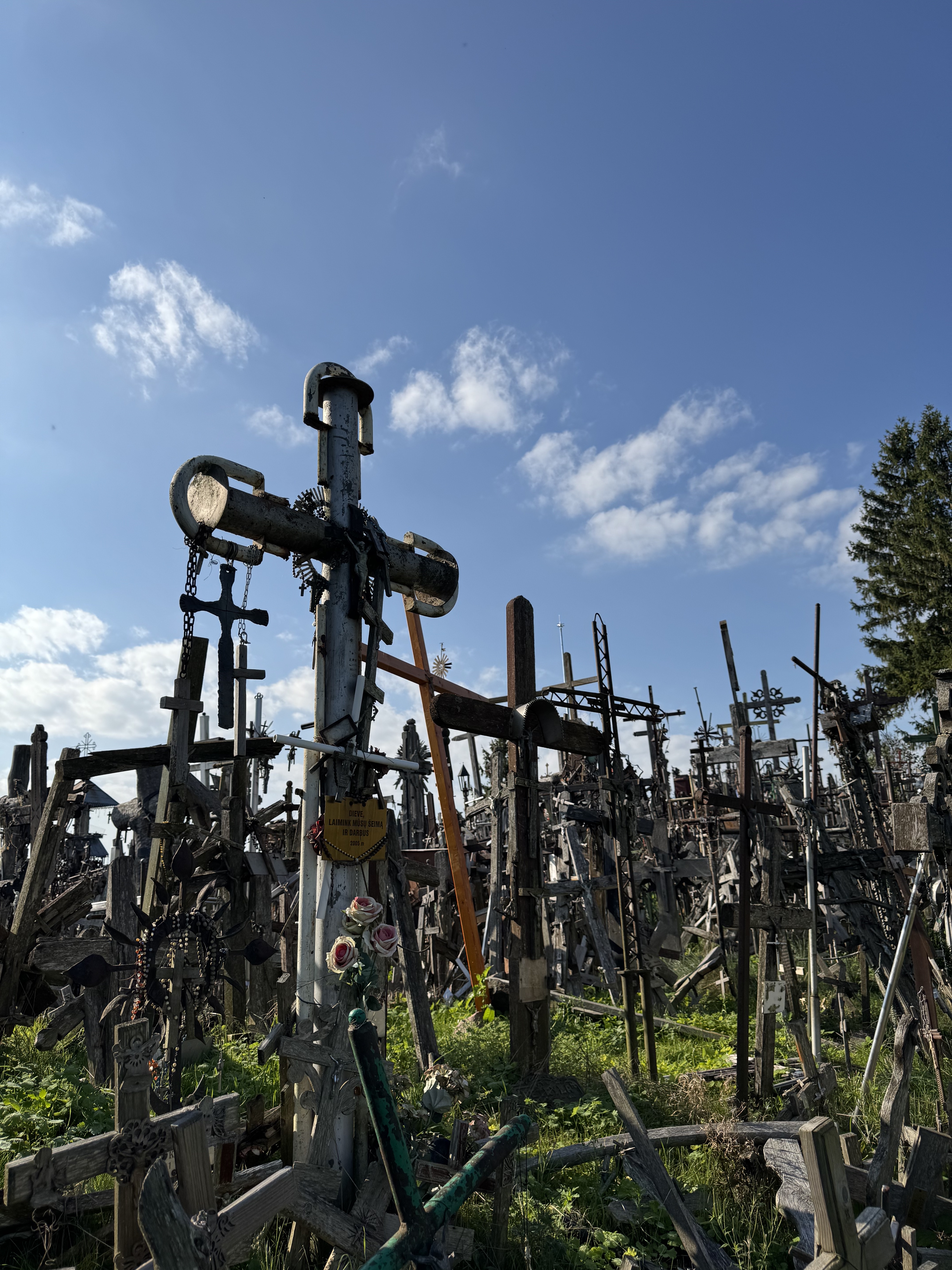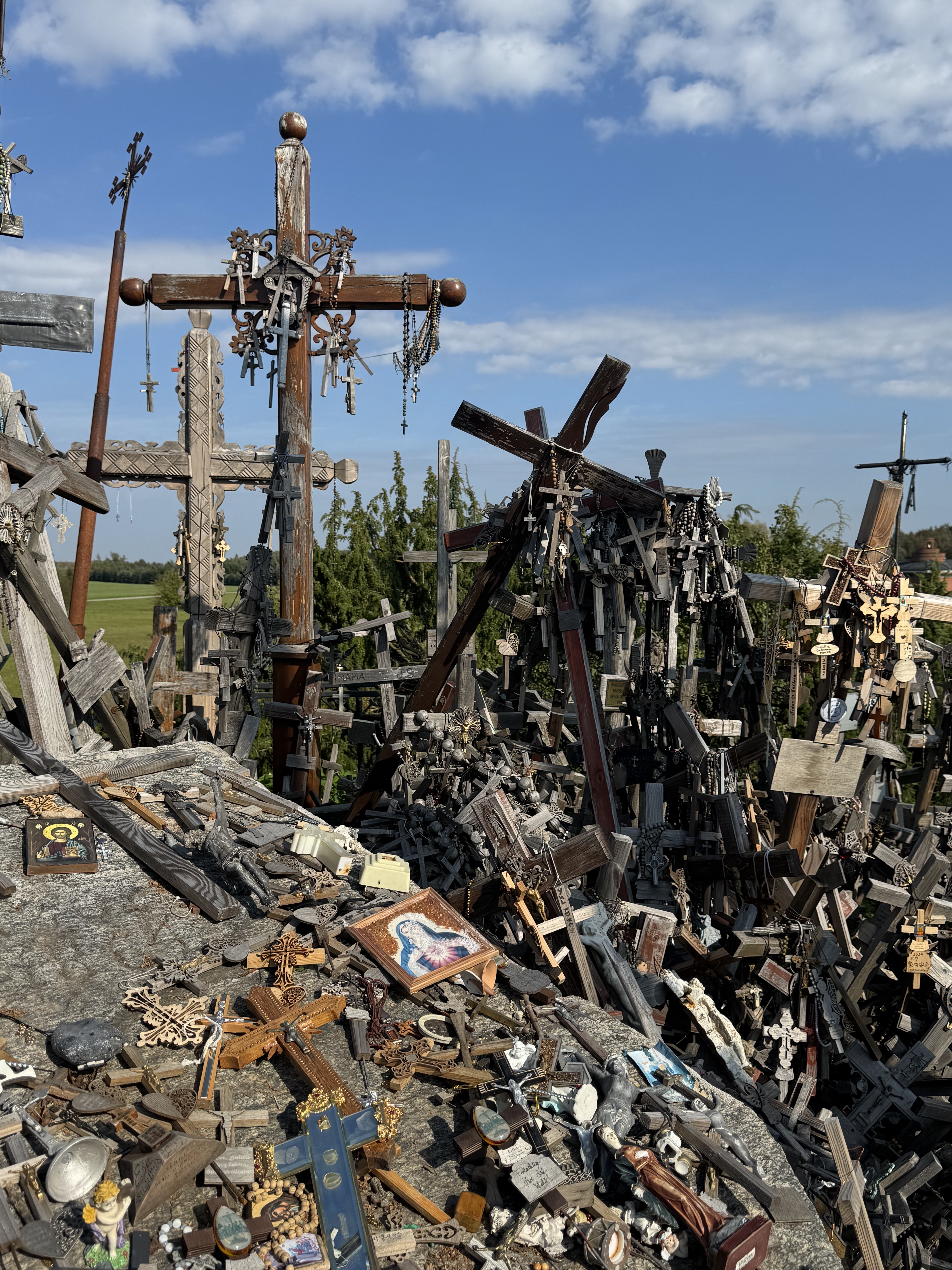 On Monday we headed down to Lithuania – by my reckoning ticking off my 71st country – visiting the city of Šiauliai and the nearby Hill of Crosses. No one’s quite sure why people started leaving crosses on this old hill fort, but the practice is believed to have started in the mid 1800s. In Soviet times public displays of religion were banned, and so this became a site of resistance, with authorities removing or destroying the crucifixes, only for locals to sneak back and leave more. And so it became a symbol of anti-Soviet resistance and the fight for Baltic religious and national freedom. There are now thought to be over 100,000 crucifixes atop this small hill.
