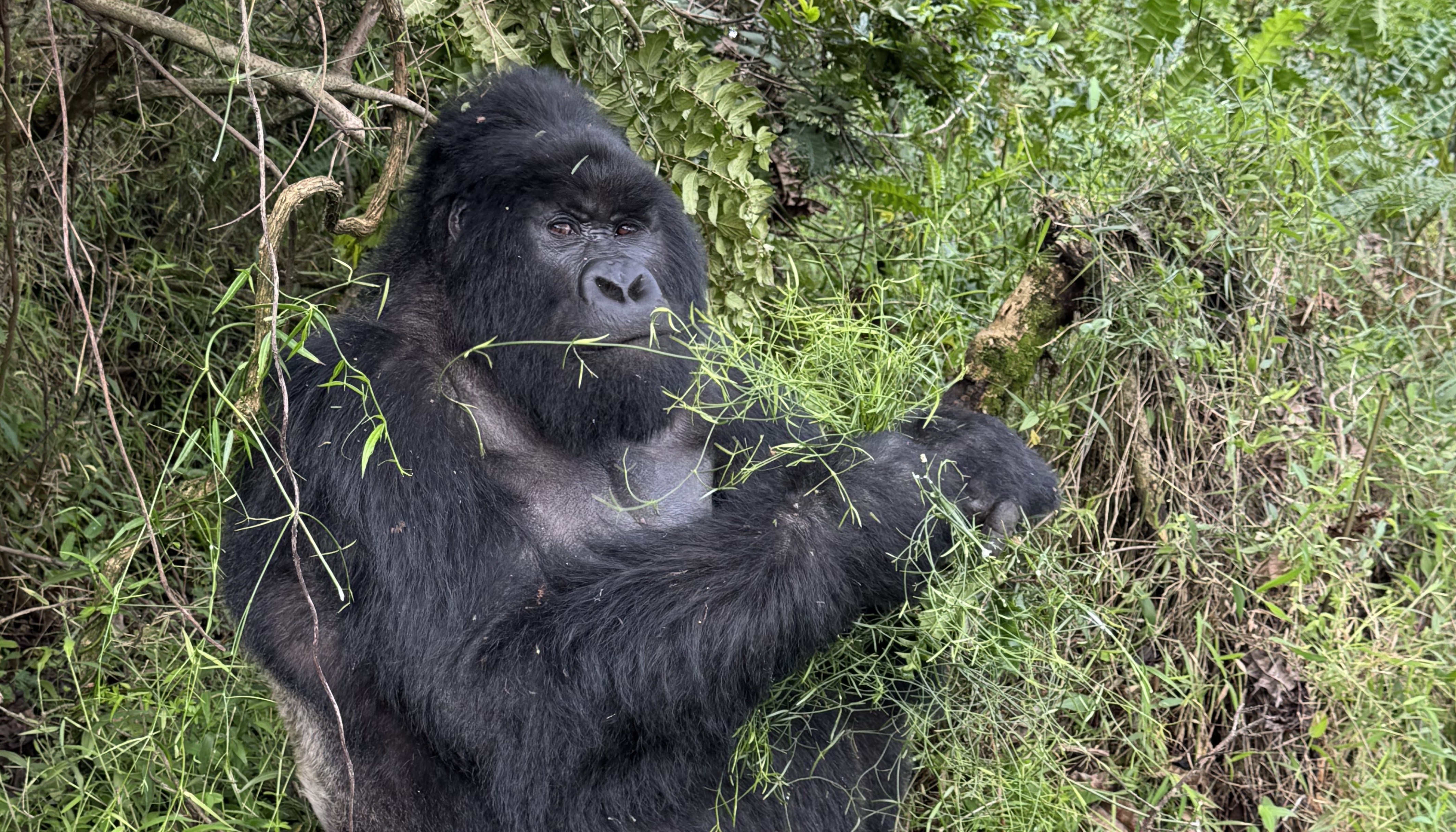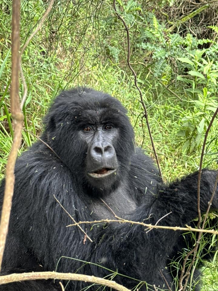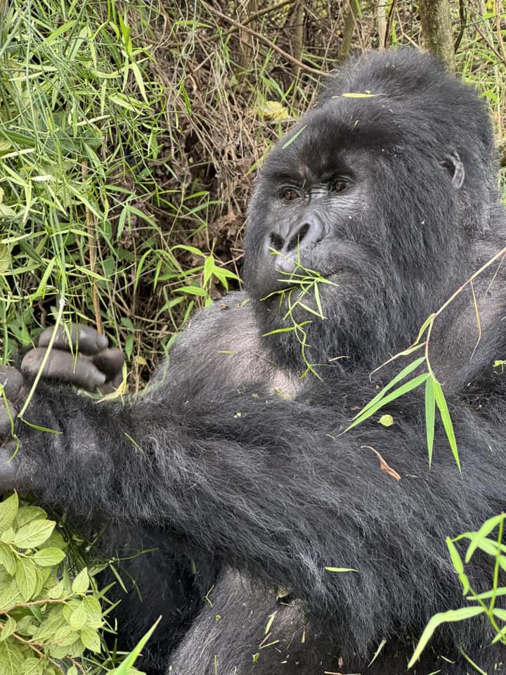 There he was, a metre away, calmly munching leaves like an oversized Zen master. And then—because why not—he got up and casually strolled past us, brushing against my leg as if to say, “Yes, you may bask in my magnificence.” In total, we saw three silverbacks, a juvenile male, a female, and a baby. It was beyond anything we’d hoped for.
