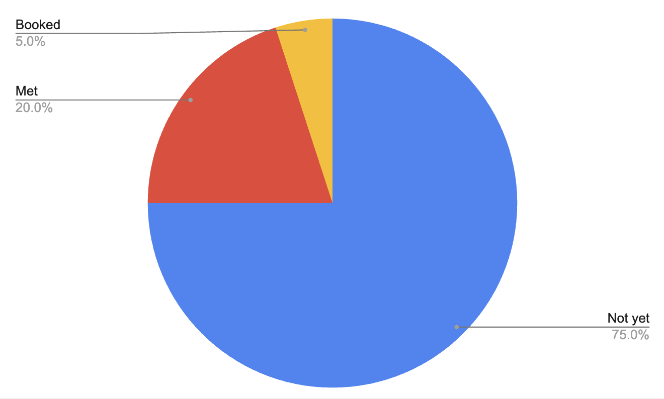 19 met, 5 booked. Just shy of 25%. But with a travel-heavy Q2 looming, I’ll be racking up catch-ups at pace.