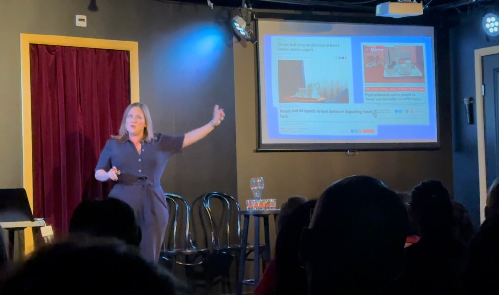 As mentioned in last week’s weeknote, I took to the stage on Sunday for PowerPints, the PowerPoint-based comedy show. My presentation—Hotels and their Design Crimes—didn’t win Best in Show (robbed, obviously), but I did get to say “jizz-stained wank blanket” repeatedly into a microphone in front of actual humans, so I’m calling that a win anyway.