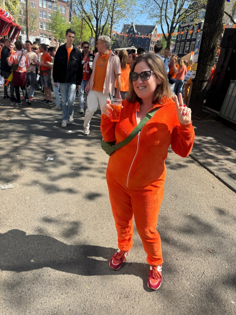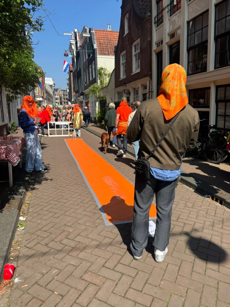 I scored a fluffy orange onesie in the kids section of Hema and danced the afternoon away at a sound system on the Palmgracht. Some bloke down the road hung a massive disco ball from his gevelsteen (the hook on the front of Dutch houses) and spent the day leading singalongs in the street.