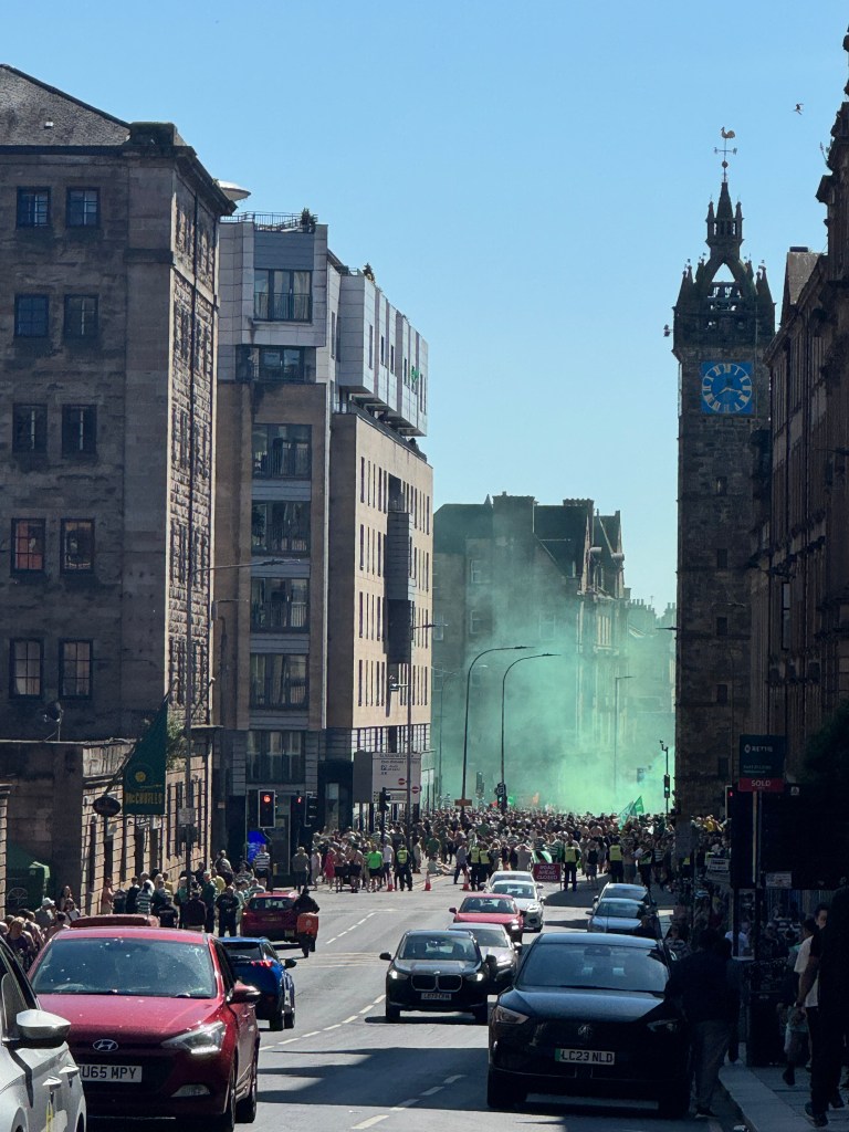 Back to Glasgow again — this time for my annual weekend away with a different group of friends. The city was every bit as sunny and welcoming as last week, but with an added chaotic twist: Celtic’s league win, an Orange March, and Kylie headlining during Eurovision weekend. Sunshine, sequins and sectarianism made for quite the cultural cocktail.