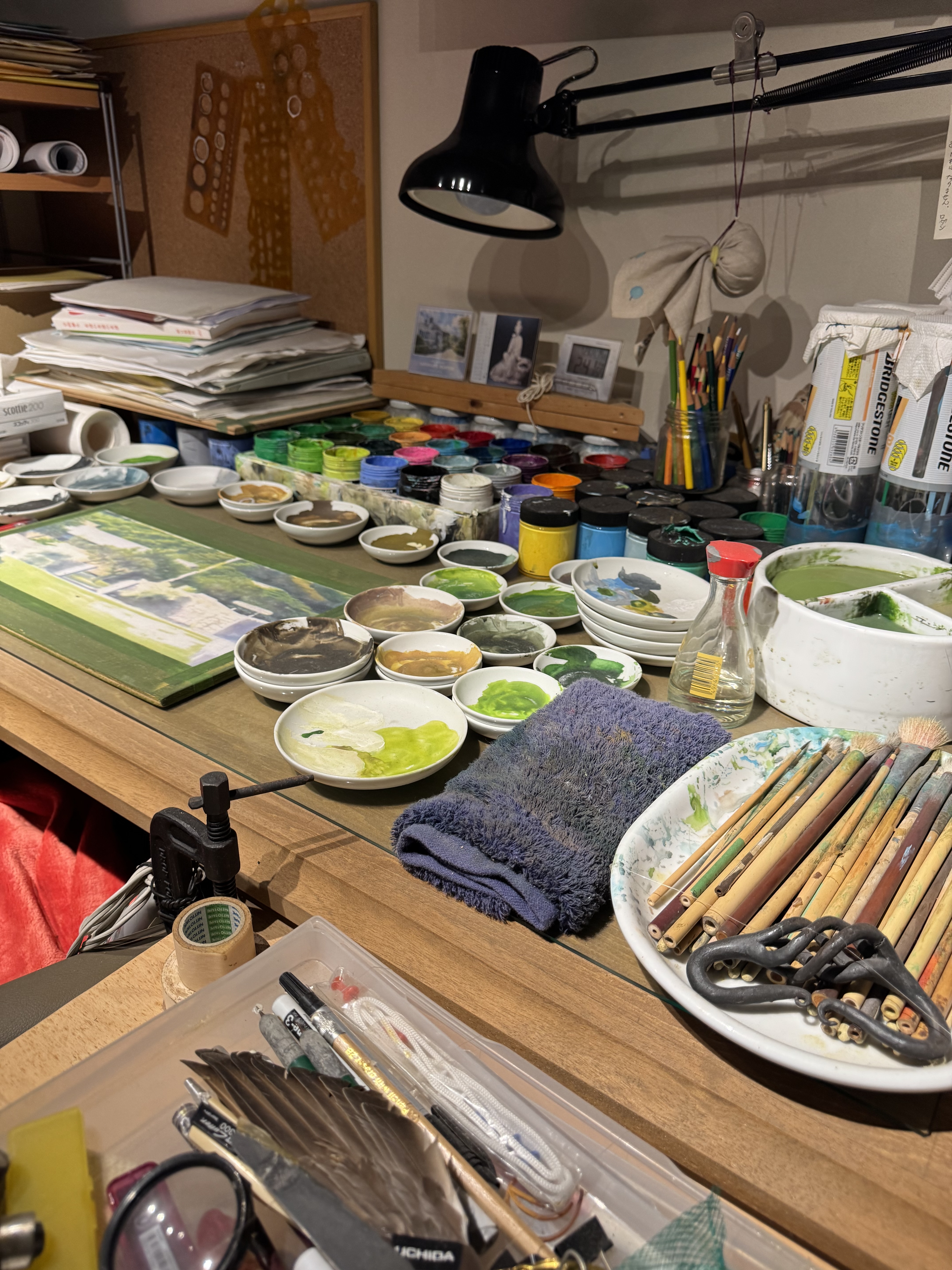 Nizo Yamamoto, the artist behind Studio Ghibli’s most iconic painted backgrounds, was born here. One of his final projects was a series of a hundred landscapes of these islands — misty forests, fishing harbours, weathered temples — all rendered in his delicate, dreamlike style. Being here feels a little like stepping inside one of them; like living in the set of Princess Mononoke.