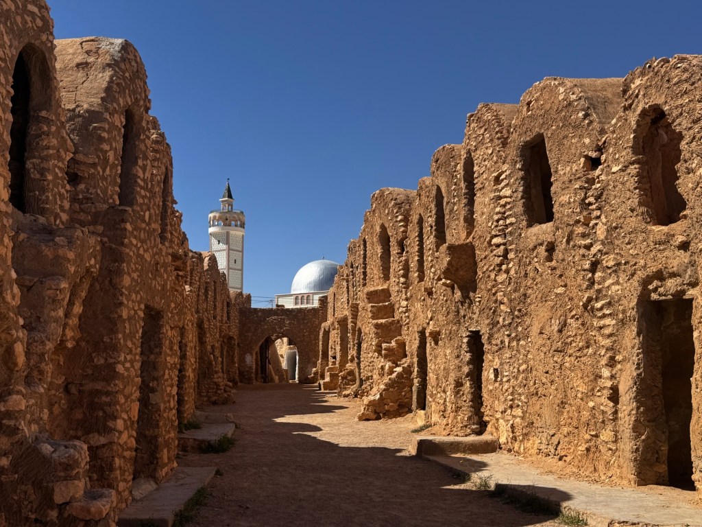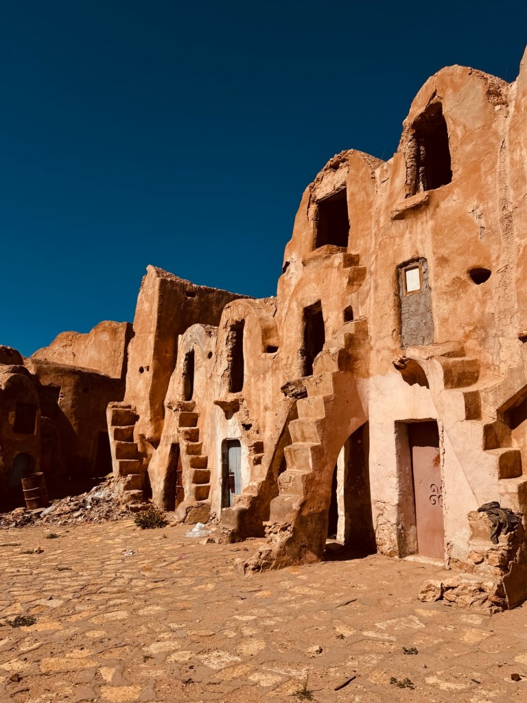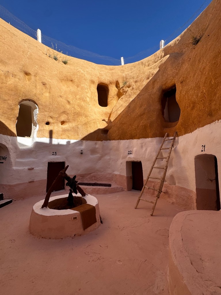 Sunday was the main event: heading inland towards Tataouine to explore the real-life locations that became Tatooine in Star Wars. Ancient Berber dwellings as Anakin’s lair. An abandoned bakery as Mos Eisley. Blue milk at the Lars homestead. An unnecessary amount of Force-wielding outside Obi-Wan’s house. I’m not a die-hard fan, but the landscapes are genuinely other-worldly — vast, sculpted, elemental. You can see why filmmakers looked at that horizon and thought: yes, this will do for another planet.