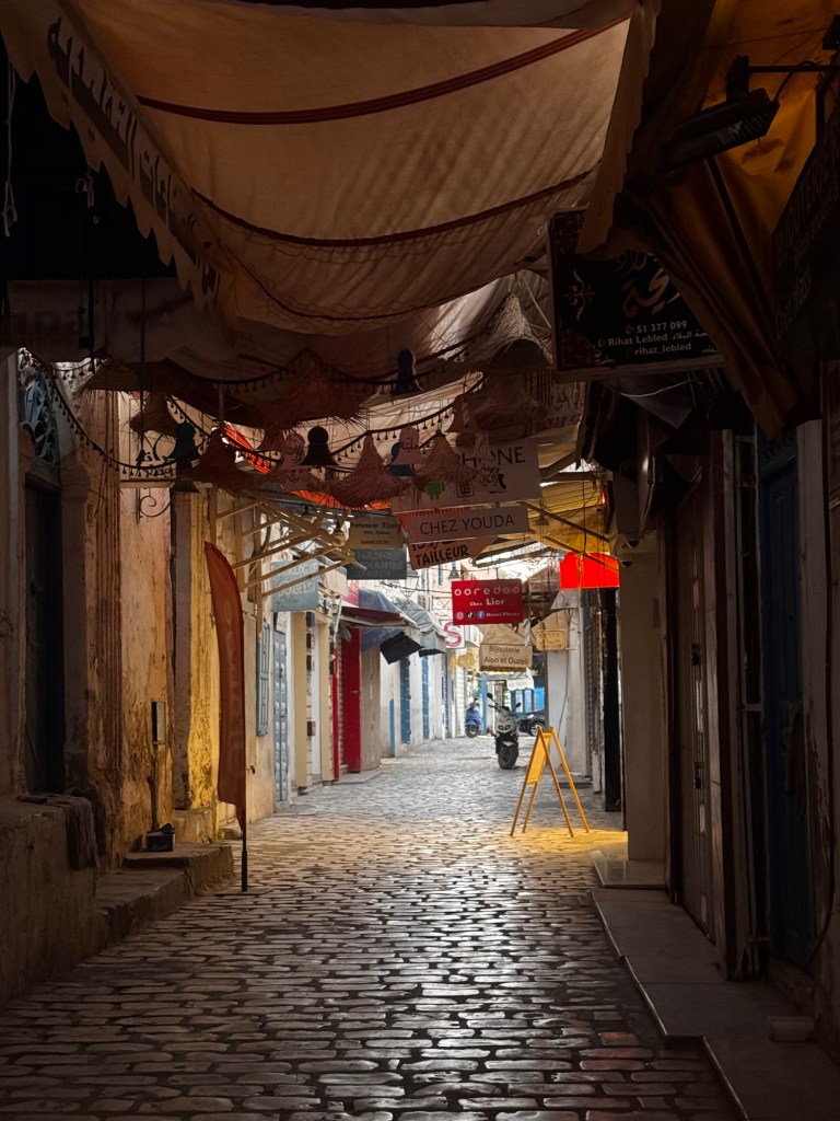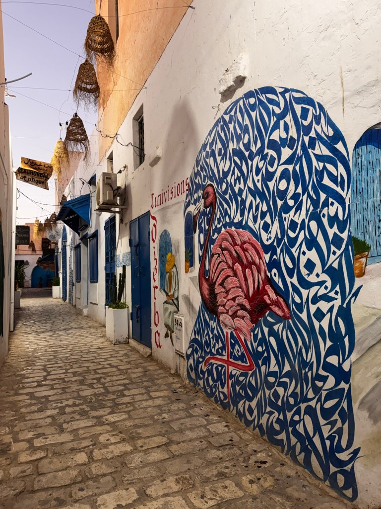 Then down to Djerba, where the Sahara meets the Mediterranean — medinas and minarets, long quiet streets, shutters down for Ramadan, giving the whole island a slightly dystopian, suspended-in-time feel.