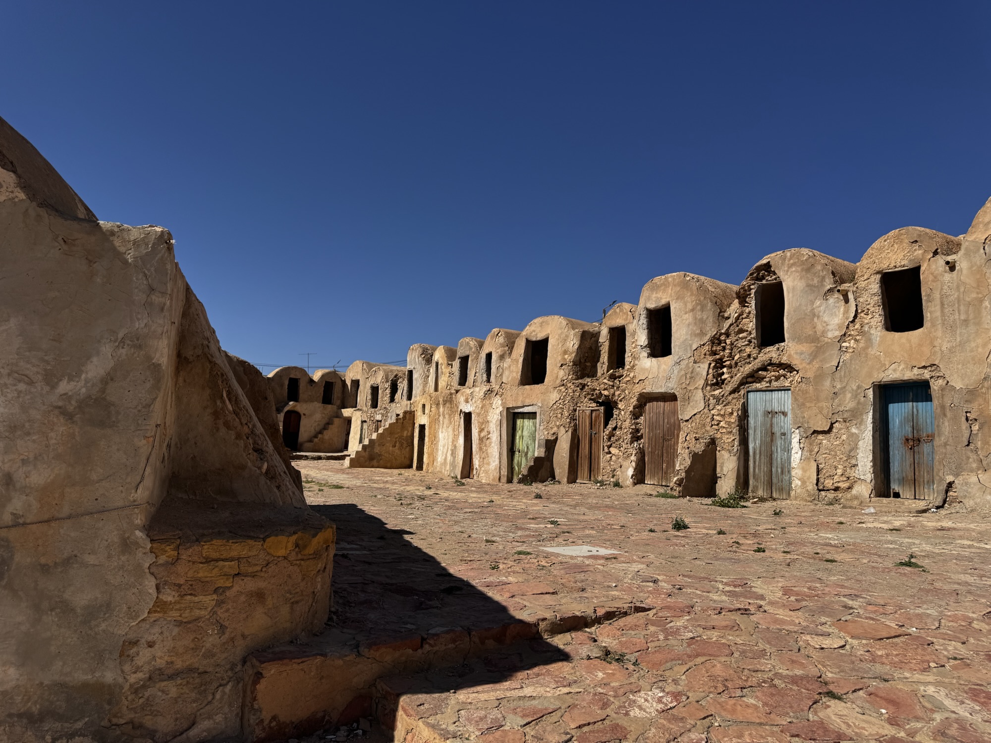Sunday was the main event: heading inland towards Tataouine to explore the real-life locations that became Tatooine in Star Wars. Ancient Berber dwellings as Anakin’s lair. An abandoned bakery as Mos Eisley. Blue milk at the Lars homestead. An unnecessary amount of Force-wielding outside Obi-Wan’s house. I’m not a die-hard fan, but the landscapes are genuinely other-worldly — vast, sculpted, elemental. You can see why filmmakers looked at that horizon and thought: yes, this will do for another planet.